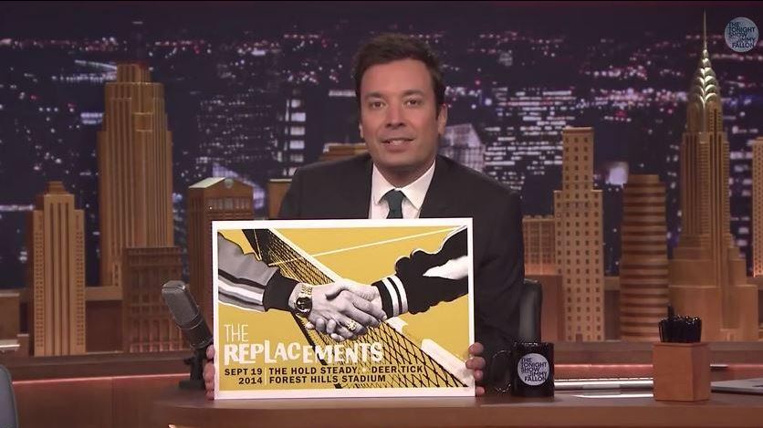 After being banned from Rockefeller Center in 1986 for performing drunk on SNL, The ‘Mats were back on network television last night on Jimmy Fallon. They sounded like the Replacements. It was awesome. It was noisy but sharp. Frontman Paul Westerberg forgot some of the words, and despite usually not giving a shit, seemed happy to be on TV again. They play at the Forest Hills Tennis Stadium with The Hold Steady and Deer Tick in New York September 19th.
