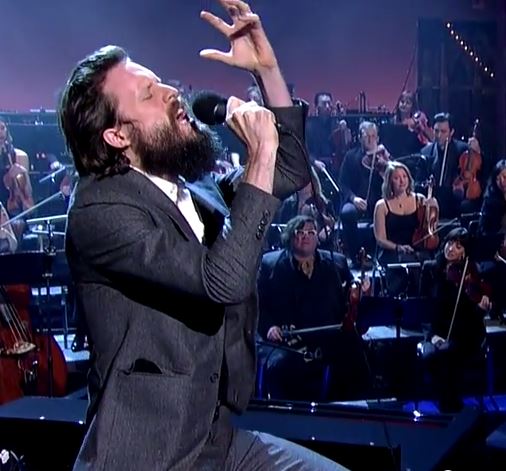 Father John Misty took to David Letterman to live his dream of weirding out America again, but this time he announced a new album due out February 10 via Sub Pop, titled, I Love You, Honeybear. He performed the song Bored In The USA with a 22 piece orchestra and pulled out all the stops including starting at the piano, which I am not sure he was even playing, dramatically sitting cross legged over the piano before getting on this knees and belting on that piano. It even included the audience belting out in laughter in what appeared to be either a recorded laughtrack, or just a collective moment in time where they realized the song was far more satirical than the drama of it all led on to. It was more performance art than a “song.”